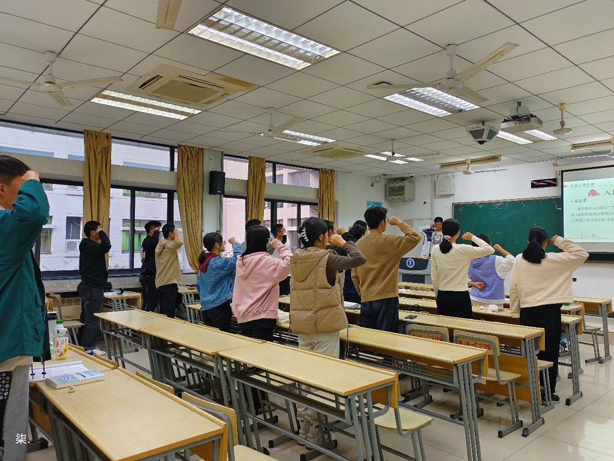 本次活动内容共分为四个环节。首先,为庆祝中国共产党第二十次全国代表大会的顺利召开,同学们一同观看了开幕会,学习了习近平总书记对当代青年的嘱托。第二环节的主题是“觉醒年代青春共奋斗”。大家一同观看影视剧《觉醒年代》的热血片段,深切感受到共产党人不怕牺牲,英勇斗争的革命精神。看完片段,大家纷纷表示备受鼓舞,并决心要努力奋斗。第三个环节围绕“当代青年吾辈楷模”这一话题展开。同学们了解到了几位当代的模范青年。虽生逢盛世,但仍有人在砥砺前行,无论是大学生村官卢毅还是全国技术能手邹彬,他们无一不是值得学习的榜样。最后以李世龙带领全体同学高声宣读入团誓词结束了此次团日活动。