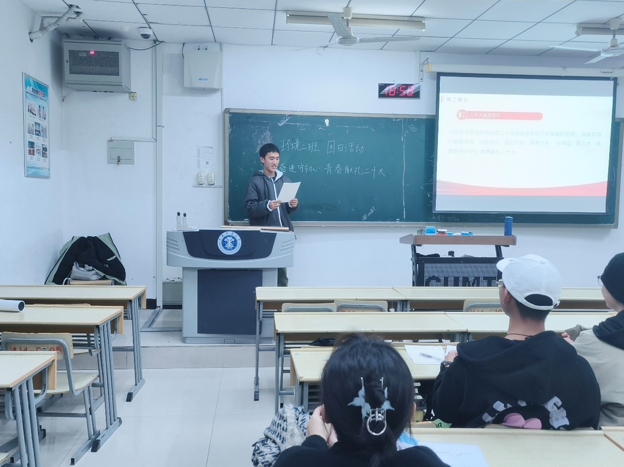 为认真学习贯彻落实党的二十大精神,进一步加强我院团组织建设,做好新时代青年工作,更好地团结引领全院团员青年听党话、跟党走。11月23日下午6点30分,我院环境类22-2班团支部于博四C-206举办以“砥砺奋进守初心 青春献礼二十大”为主题的团日活动。