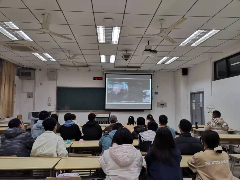 活动中,主持人开展了团课宣讲,首先介绍了党的二十大,之后详细系统地讲解了党的二十大精神以及其聚焦的内核,指出党的二十大的召开意义及其对于我们青年人的指导作用,激发同学们的思考与讨论。主持人向同学们提出问题,同学积极发言参与问答活动,使团课氛围持续升温。在团课过程中,同学们积极参与了看图猜党史游戏。最后,主持人特别介绍了一二九运动,回顾党与青年运动的历史,讲述了先辈们的事迹。团日活动结束后,主持人向同学们发表新年祝福和四级鼓励,得到同学们的积极回应。