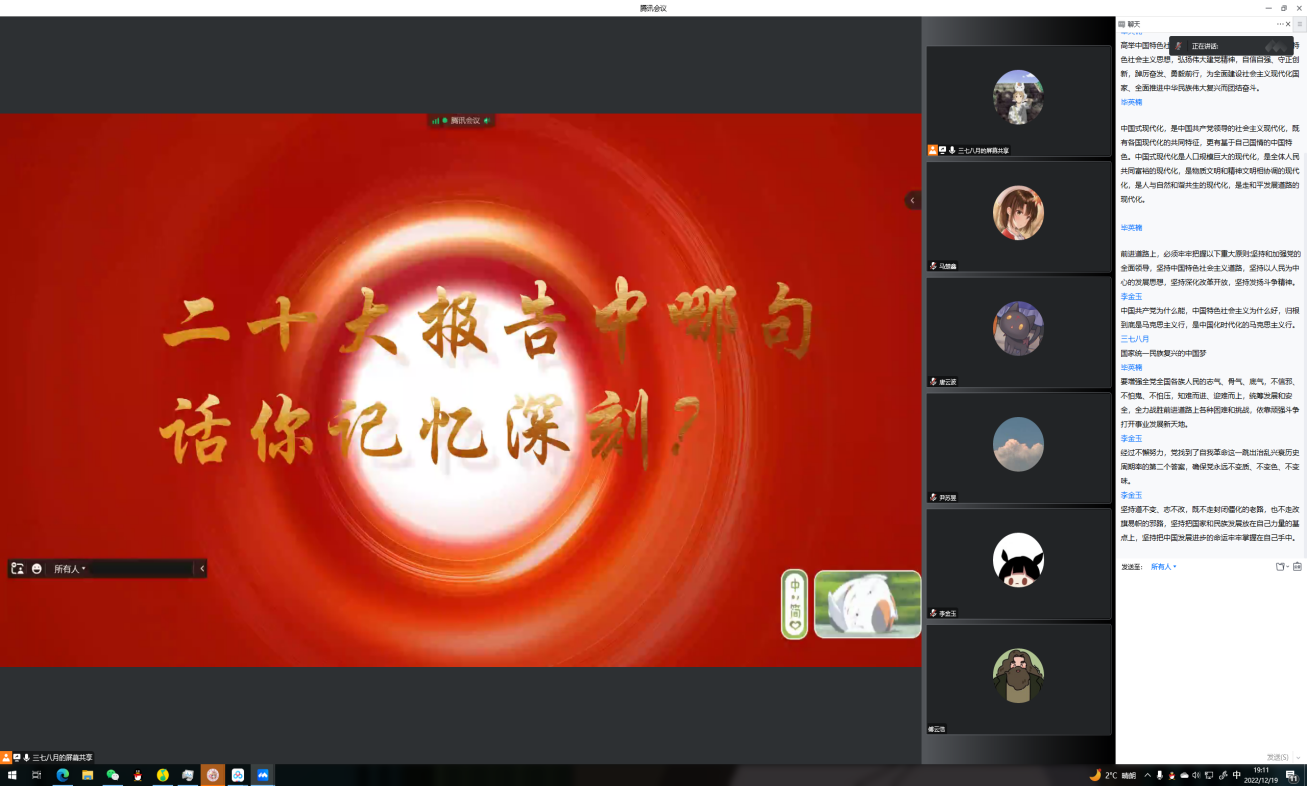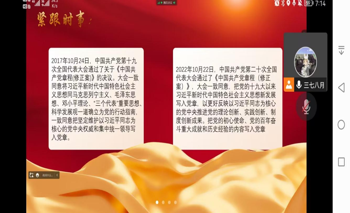 为深入学习和贯彻党的二十大精神,提高同学们的思想觉悟,教育引导同学们坚定不移听党话、跟党走,12月19日晚上7点,我院遥感22-2班团支部于线上举办“学习二十大,永远跟党走,奋进新征程”主题团日活动。