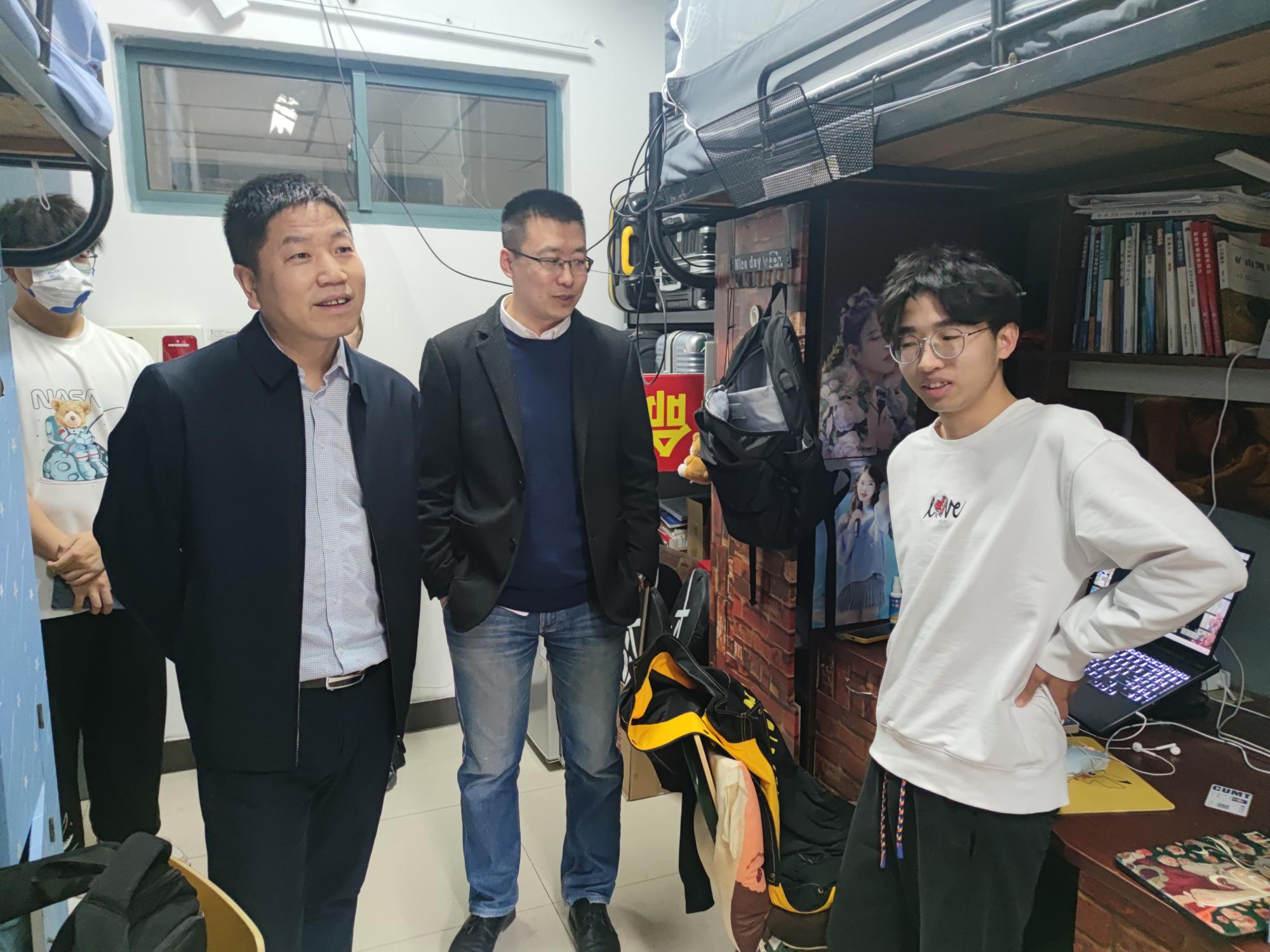 在宿舍走访过程中,王守刚书记与同学们进行了亲切交流,询问了同学们在生活和学习上的情况,提醒同学们注意寝室安全问题,在校园内也不能掉以轻心,不能疏于防范。王守刚书记还强调寝室关系的重要性,提出拥有积极向上,互相激励的寝室氛围有助于同学们的学习。之后王守刚书记询问了19级同学目前面临的就业升学情况以及22级同学之后的专业分流问题,并对此提出了建议指导。最后提醒同学们要保持良好的学习态度,处理好寝室关系,互相勉励,共同进步。