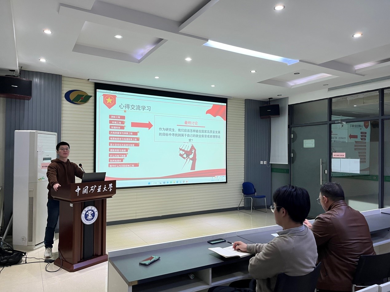 活动最后,我院研究生辅导员杨政军老师做总结发言,杨老师指出,我们要真正把学习两会精神扎根在思想上、落实在行动上,每一位党员同志要自觉担起责任与使命,坚定信心、团结一致、脚踏实地的迈向新征程,锐意进取,不负时代!