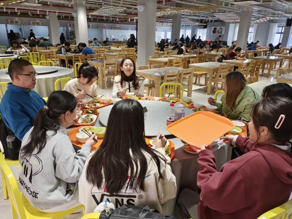 就餐过程中,高丽慧老师与同学们展开亲切交谈,高丽慧老师首先向同学们介绍了环境工程专业的教学内容,特点以及未来就业方向,同时详细讲解了环境科学与环境工程专业的区别与联系以供同学们专业分流参考。接着,高丽慧老师也分享了自己的求学经历和对环境专业的看法,她提到自己在国外求学时看到的环境专业的研究进展以及感受到的国外研究氛围,为有出国意愿的同学提供建议。高丽慧老师也与同学们谈到目前的环境保护政策和国家对环境的重视,帮助环境专业的同学们加深对本专业的了解,展望未来环境发展方向和就业前景。在与高丽慧老师的交流中,同学们也提出了自己对于专业内容的困惑和未来发展方向的迷茫,这些问题均得到了老师的细心讲解,同学们收获颇丰。活动最后,高丽慧老师与同学们交流了生活和学习上的问题,鼓励同学们珍惜大学时光,踔厉奋发,积极进取,放宽视野,积极与老师交流意见和想法,坚定自己的目标并为之不断努力。至此,此次活动圆满结束。