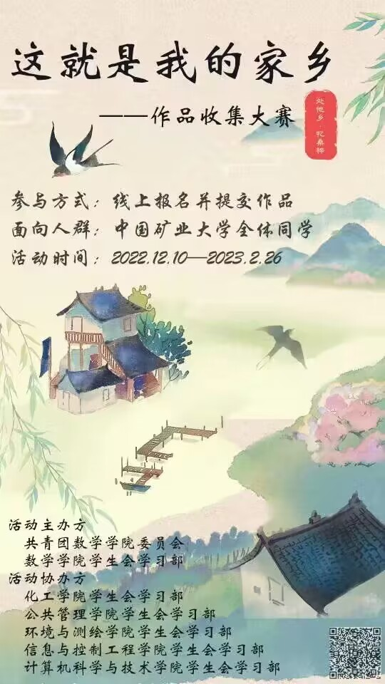 为培养同学们热爱家乡的情怀,引领同学们深入了解家乡风土文化,进一步增强同学们的文化自信,我院学生会学习部协办了“这就是我的家乡”作品收集大赛。