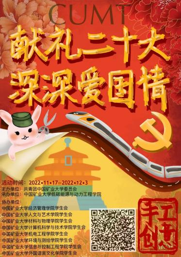 为庆祝二十大召开,激励学生厚植家国情怀、涵养进取品质,让同学们做好立志成长为新时代好青年的思考和实践,引领广大青年勇于担负起时代赋予的使命和担当,我院学生会办公室协办“献礼二十大,深深爱国情”手工创意主题活动。