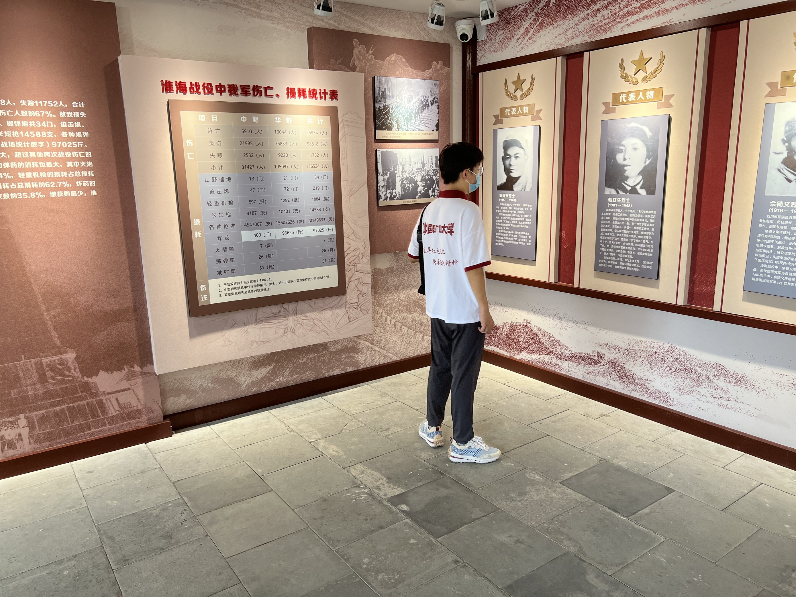 现在的旧址分为三进院落,从大门进入,首先引入眼帘的是序厅中央的雕塑,主题是——人民的胜利,寓意着淮海战役是一场人民的战争,淮海战役的胜利是人民的胜利。人民群众是战争伟力最深厚的根源,人民群众的全力支持,是我党军队能够战胜国民党军的根本原因。