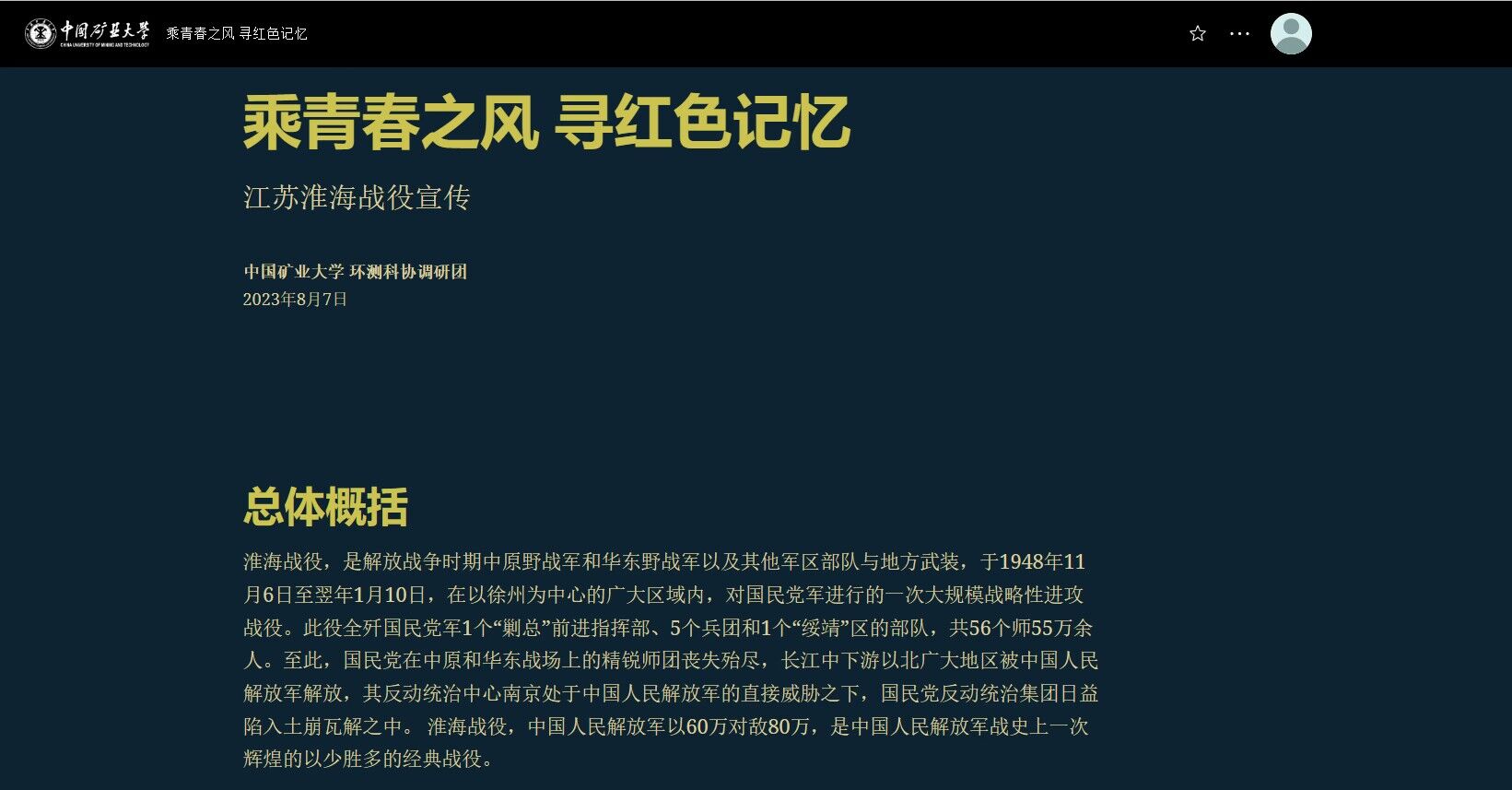 为利用新兴媒体达到红色文化创新传承的目的,2023年8月2日至8月14日,36365路检测中心科协实践团通过线上交流,正式完成以淮海战役为核心的交互式红旅地图制作。
