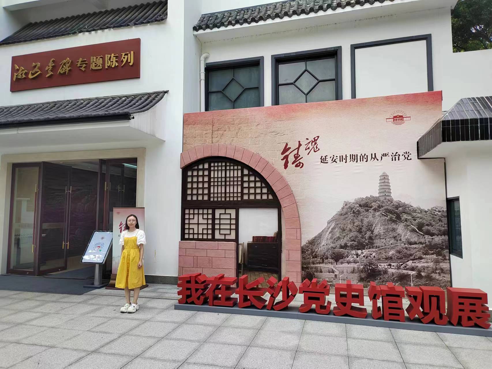黄嘉仪同学依次参观了各个展厅,在一件件珍贵实物和一张张泛黄照片前驻足凝视,深刻感受中国共产党人坚定信念、不畏牺牲、前赴后继、可歌可泣的伟大壮举。从毛泽东塑像到中共湘区委员会旧址,再从艺术碑廊到历史陈列馆,黄嘉仪同学将自己浸润在红色文化中,深深为革命文化魅力所滋养。