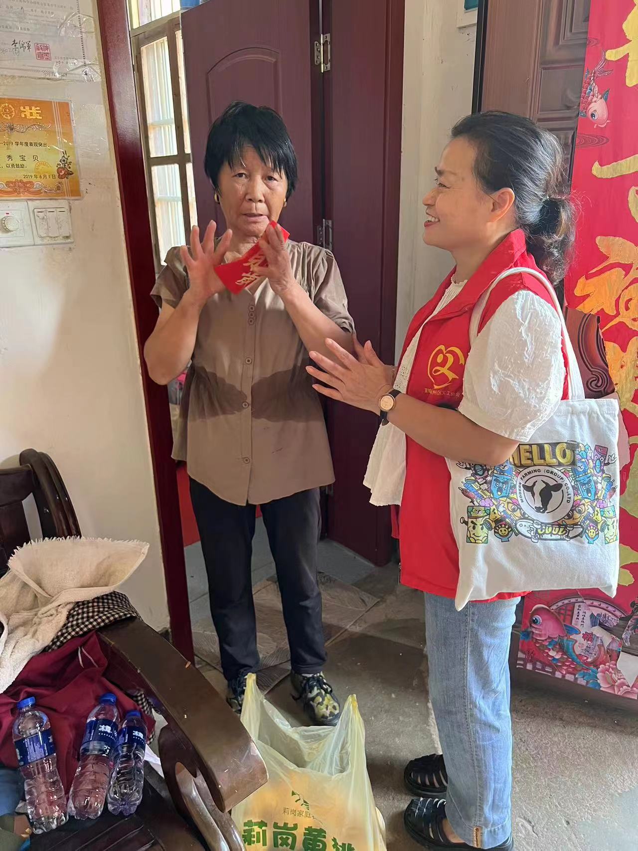 资助人与学子母亲交流生活情况