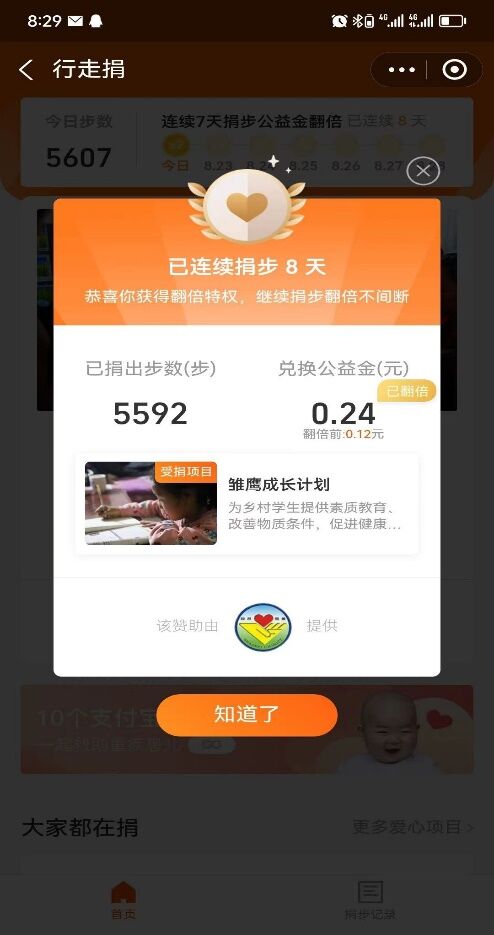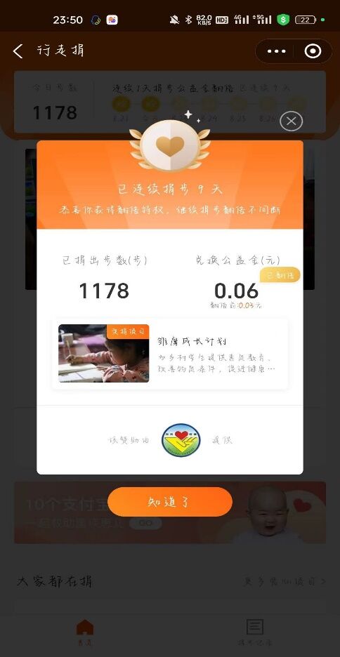 2023年8月10日至2023年8月23日期间,我院青年志愿者协会举办了“暖心公益•爱心捐步”暑期特别活动,该活动旨在提高同学们对公益事业的认识度和参与度,培养他们的社会责任感和公益意识,让公益融入他们生活的点滴。活动面向我院全体学生,鼓励他们在暑期通过简单的计步来积极参与公益事业。