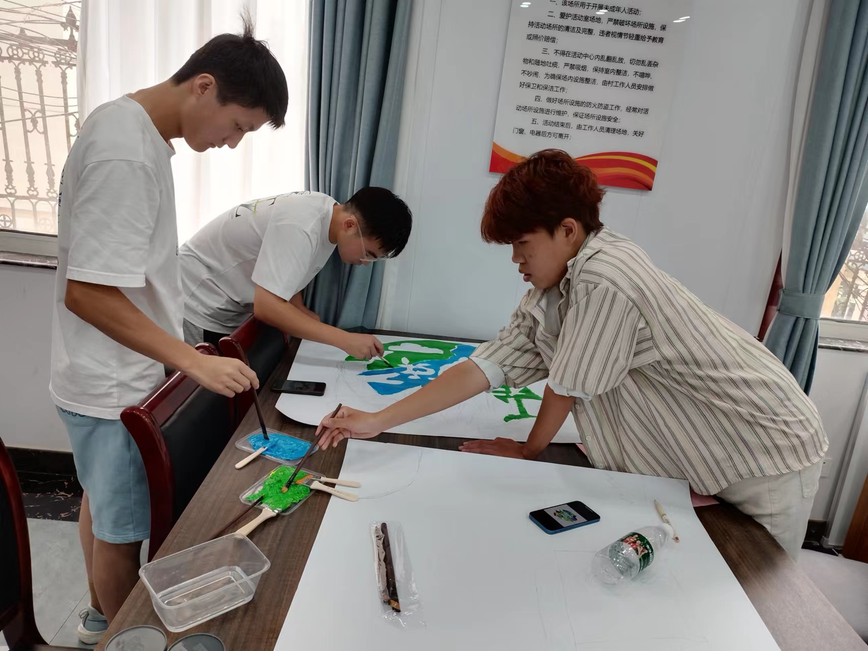 活动期间,8月18日上午,实践团向村民发放了有关垃圾分类的宣传单,并详细讲解了垃圾分类的重要性和分类方法。在接下来的三天里,实践团成员们以画笔为工具,创作了多幅宣传画,分别描绘了生态文明和优良传统等主题。这些宣传画既展现了实践团成员的艺术才能,也传达了他们对生态环保和乡村文明的热爱和尊重。8月21日,实践团将所有宣传画在村中展出,吸引了众多村民前来参观。这些宣传画不仅美化了乡村环境,更通过艺术的方式向村民们传递了环保、文明的重要信息。