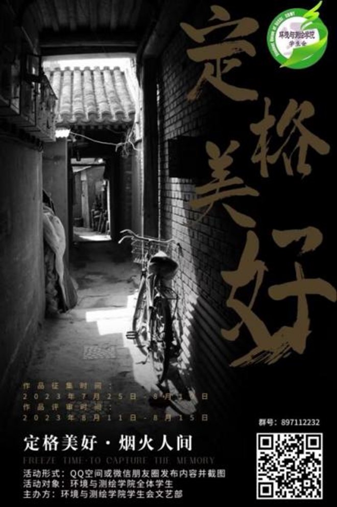 为鼓励学生发现家乡烟火气,宣传家乡烟火人情,进一步激起同学们热爱家乡的情怀,我院学生会文艺部于7月25日-8月15日期间举办了“定格美好,烟火人间”主题摄影活动。本次活动通过线上报名,线上提交作品的形式进行,采取大众评分和评委评分相结合的方式进行评选。