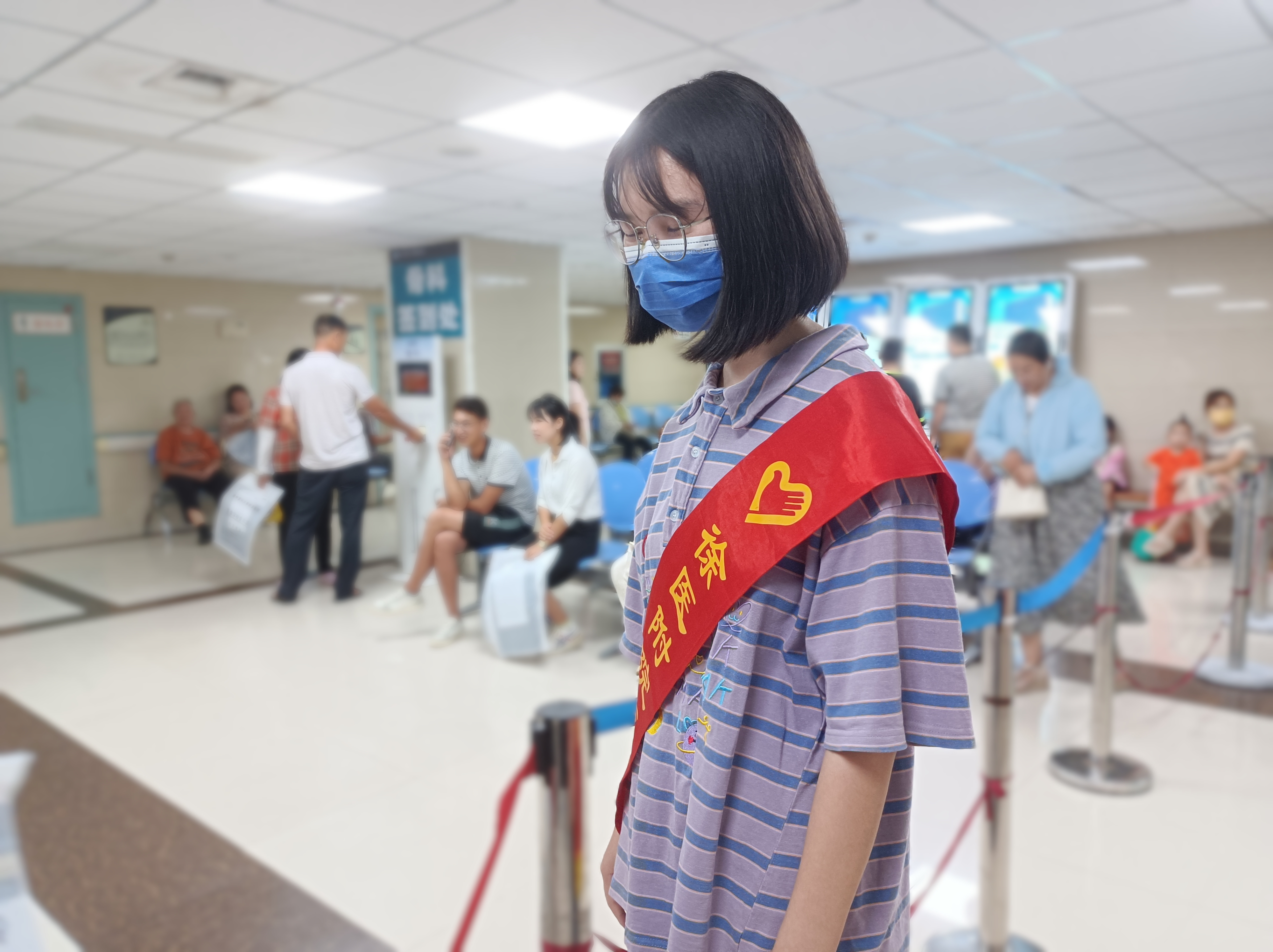 用爱心助病患,用服务暖人心。为缓解医护人员工作压力,也为帮助前来就医的患者解决一些就医问题,更好地弘扬“奉献、友爱、互助、进步”的志愿服务精神,2023年8月24日,王舒君前往徐州市泉山区徐州医科大学附属医院开展门诊导医志愿服务活动。
