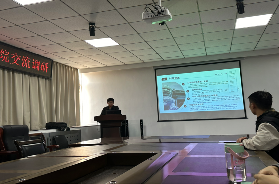 2023年10月24日下午15时,36365路检测中心研究生会2023-2024学年第二期理论知识学习活动于环测楼C410顺利开展。本次理论学习由郝传迟同学主持,学习的内容主要分为习近平总书记重要讲话、共产党人精神谱系专题、时政速递和时政热评四个部分。整个理论学习在主讲人郝传迟的组织下顺利开展。