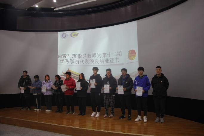 活动在庄严的升旗仪式后开始。首先,青马部部长李博宇同学展示了第十二期青马班一年来取得的丰硕成果。优秀学员代表李涛同学与大家分享了他在青马班一年来的收获与感悟,并呼吁大家积极参与相关活动,获得更多的学习机会。第十三期新生学员代表唐瑞婕、于虹笑同学向大家展示了他们将努力奋进、砥砺前行的决心和勇气。随后,青马班指导教师蔡臻老师为第十二期青马班优秀学员代表颁发了结业证书并发言,对一年来青马班的工作进行了总结,并对未来的发展做出指导。