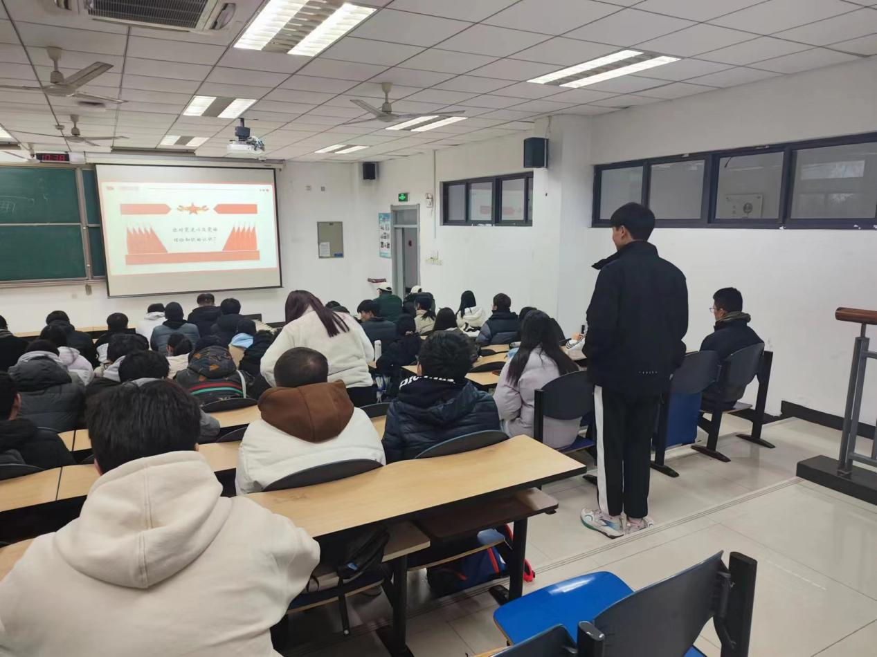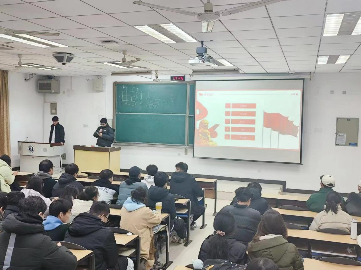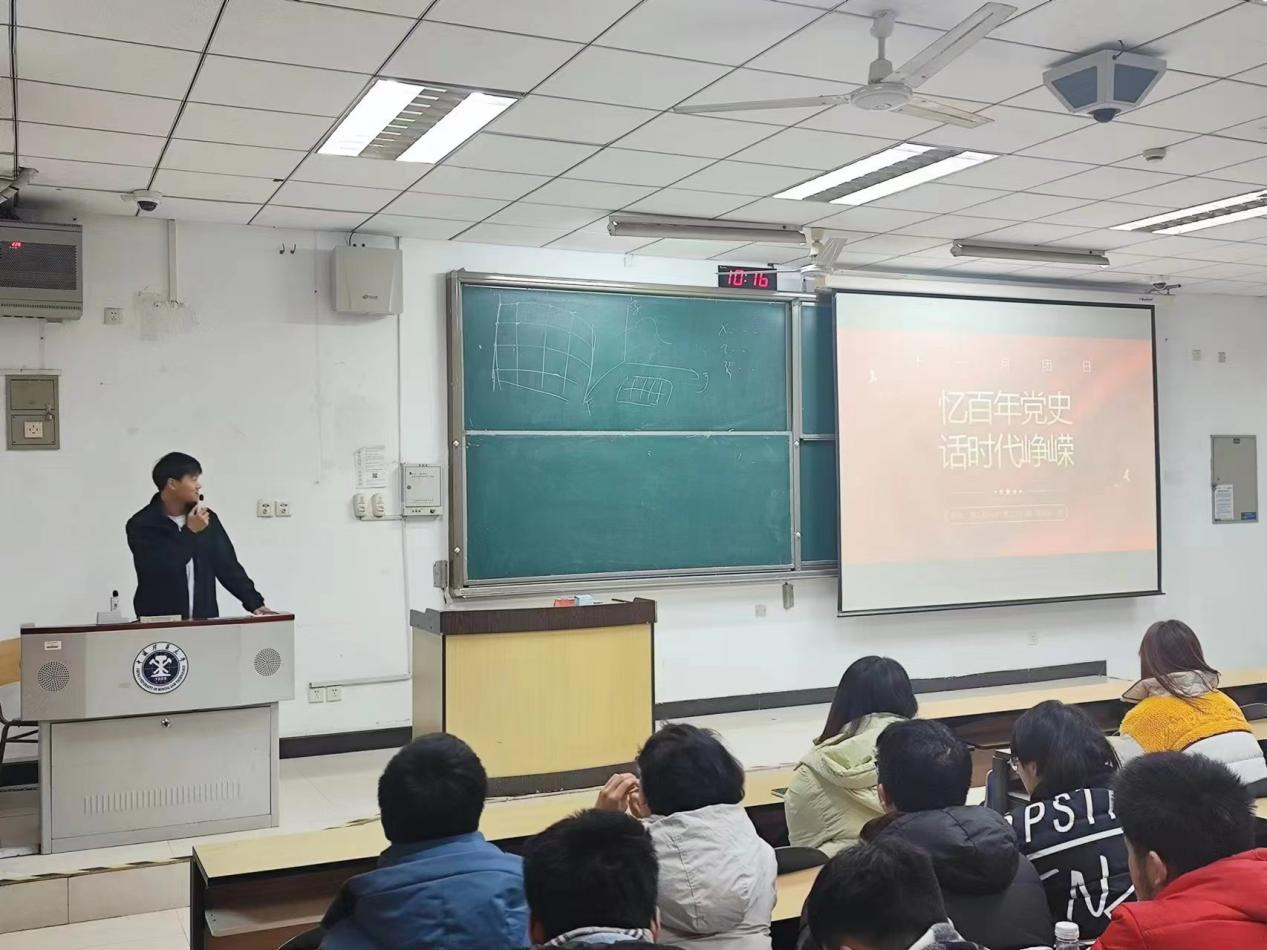 为了加强青年学生对党的历史和新时代成就的认识,激发他们的爱国热情和责任感。同时,也是为了让学生们更好地了解党的核心价值观和奋斗精神,为他们未来的成长和发展打下坚实的基础。2024年12月14日上午10:20,我院测绘工程22-02班团支部在博二B201开展“忆百年党史,话时代荣光”主题团日活动。本次团日活动由测绘工程22-01班,测绘工程22-02班,地信22-02班联合举办,由一班团支书王奥松同学进行主持。