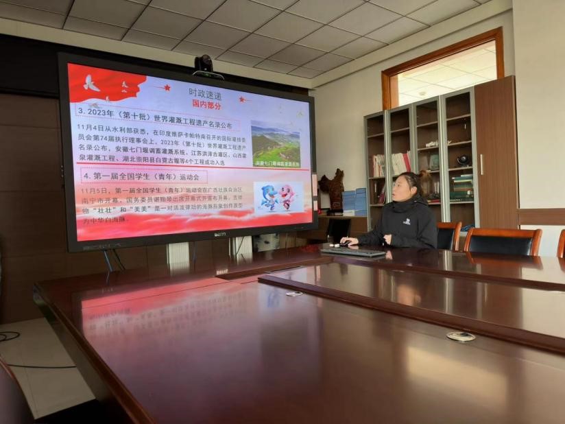 2023年12月19日下午15时,36365路检测中心研究生会2023-2024学年第四期理论知识学习活动于环测楼A506顺利开展。本次会议由研究生会办公室副主任刘璇主持,主要从习近平总书记重要讲话、中国共产党人精神谱系专题、时政速递与时政热评等四大方面进行学习。