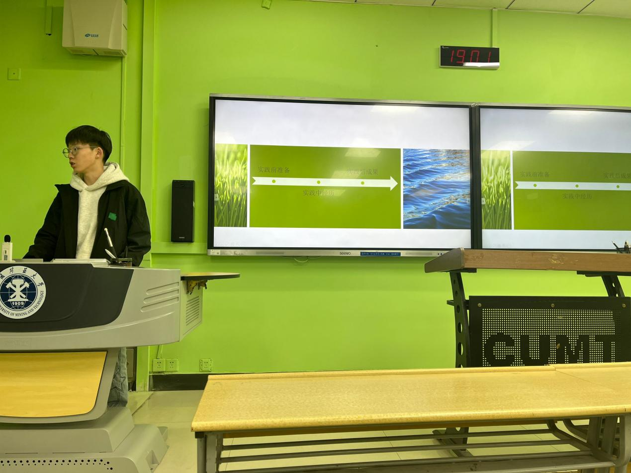 活动开始,主持人介绍了本次团日活动的开展背景及活动主题,带领同学们深入了解习近平总书记及党中央对大学生身心健康及参加社会实践活动的重视性。本次活动进行到主体部分,来自测绘工程22-4班的王宇杰、王嘉俊和来自地理信息科学22-2班的聂子涵、蒋小龙、刘永琦等五位同学分别就各自参加的寒假社会实践活动进行了分享。五位同学各自从活动背景、活动过程、活动收获及成果等方面向同学们进行讲解,收获了两班同学的一致好评,也激发了同学们参加社会实践活动的热情。活动结尾,主持人为同学们播放了优秀社会实践活动的视频材料,更加引起了同学们参与社会实践、为社会做贡献的热切心情。