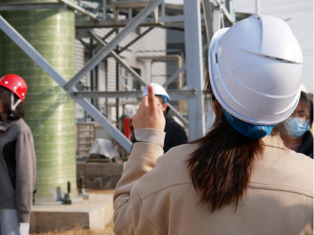 铜山华润电厂共分为三期工程,其中第三期工程为江苏省“十一五”规划中的“上大压小”建设项目,是苏北首个百万机组项目。铜山华润电厂利用石灰石/石膏湿法脱硫技术、SCR脱硝技术和电除尘技术,结合过程控制,高效协同治理大气污染,实现超低排放。厂内设有循环水补充水处理系统,现场技术人员详细讲解了传统的给水处理构筑物—虹吸滤池的工作原理和运行周期。同学们还对电厂涉及的环境标准和管理体系有了更深的认识。
