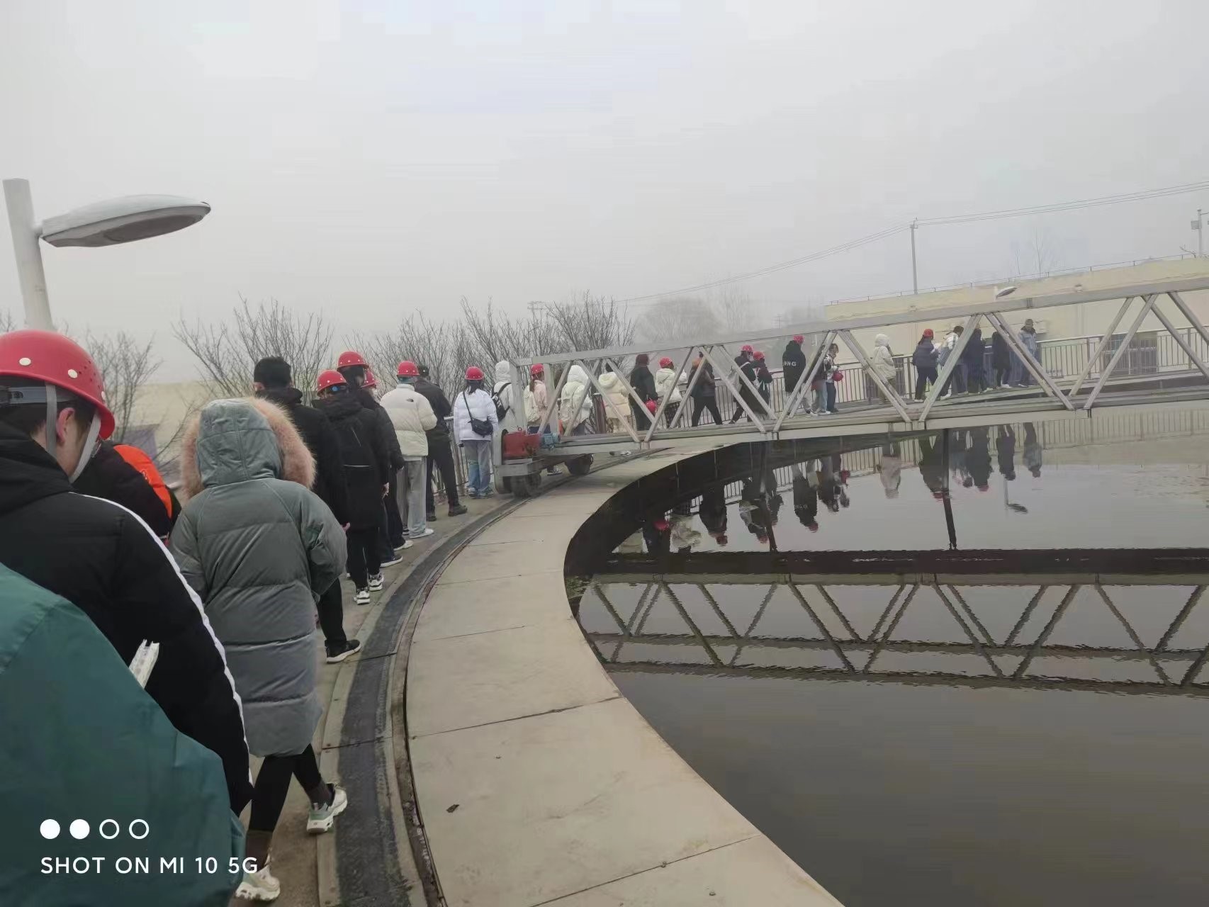 在现场,工作人员详细介绍了污水处理厂工艺和运行情况,讲解了主要构筑物作用原理及配套设备。同学们参观了厌氧水解池、A²/O生化池、混凝沉淀池、纤维转盘滤池、次氯酸钠消毒处理等单元,并对厂区所采用的“重力浓缩+带式压滤”的污泥处理工艺有了进一步的认识,更加直观地感受污水降解处理流程。从课本回归实践,为今后的学习和工作积累了经验。