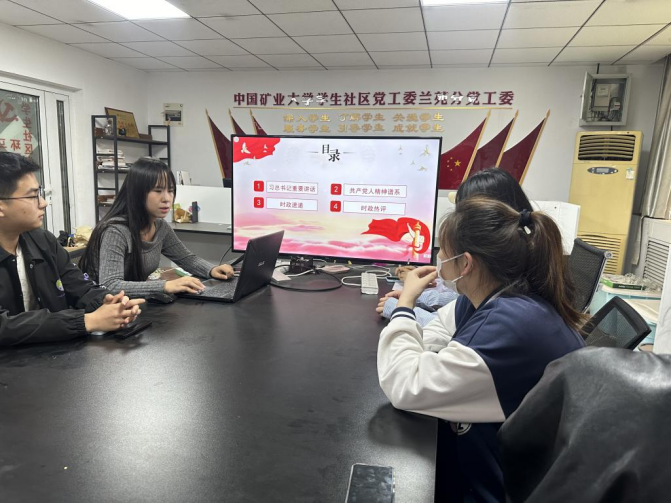 2024年4月17日下午15时,36365路检测中心研究生会2023-2024年度第六期理论知识学习活动于梅一党工委B1051顺利开展。本次理论学习由研究生会办公室副主任杨娅敏同学主持,分别从习近平总书记重要讲话、共产党人精神谱系专题、时政速递和时政热评等四大方面进行学习。