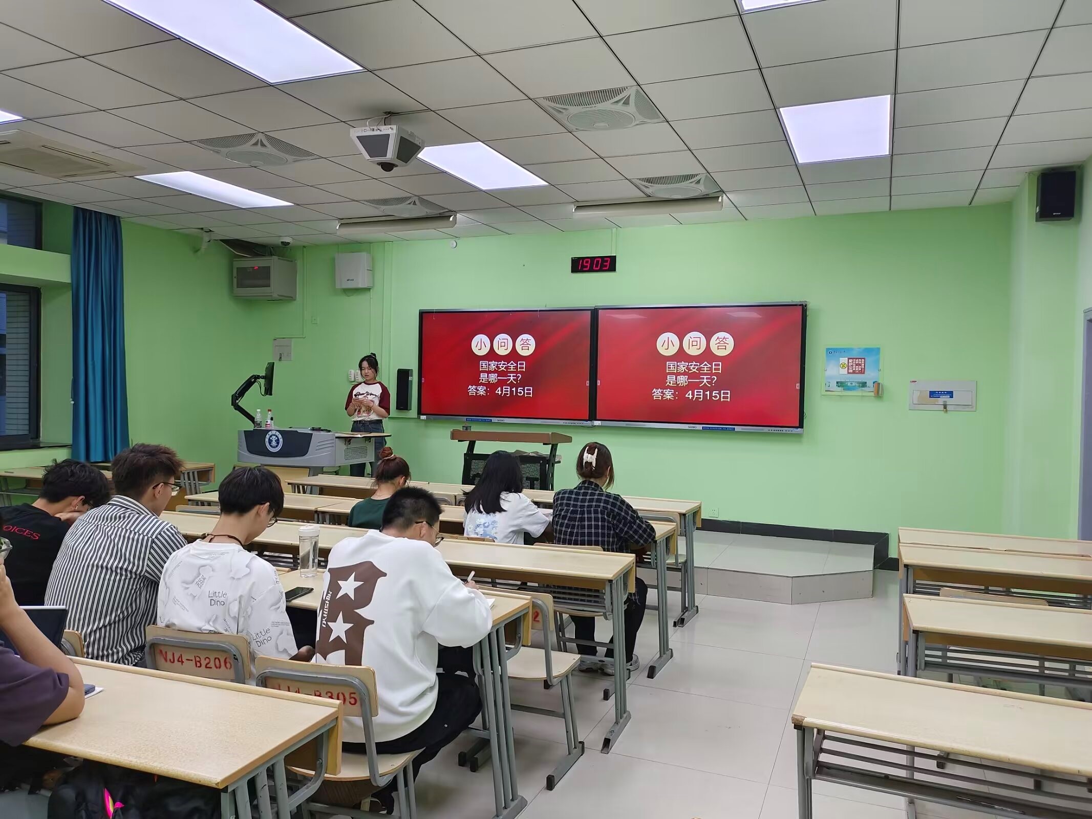 主持人钱子璇首先从活动背景开展团课宣讲。我国14亿多人口整体迈进现代化社会,规模超过现有发达国家人口的总和,其艰巨性和复杂性前所未有,必须把发展的主导权牢牢掌握在自己手中。国家安全与我们每个人的日常生活息息相关,通过此次团日活动,倡议大家从身边细节做起,维护国家安全。接着主持人开始进入第二部分“你们了解到或切身体会到的国家安全有哪些?”,主持人就这一问题展开随机问答,同学们就此问题纷纷发表了自己的看法。随后第三部分“基本知识学习”,国家安全是指国家政权、主权、统一和领土完整、人民福祉、经济社会可持续发展和国家其他重大利益相对处于没有危险和不受内外威胁的状态,以及保障持续安全状态的能力。接着展开第四部分“与自身的联系”,呼吁大家认识到大学生作为国家未来的栋梁,提出有许多方式可以在日常生活中为维护国家安全做出贡献。团课最后,主持人做了小结,让大家认识到通过这些方式,大学生不仅能够在个人层面上为维护国家安全做出贡献,还能够影响和带动周围的人共同参与到国家安全的维护工作中来。