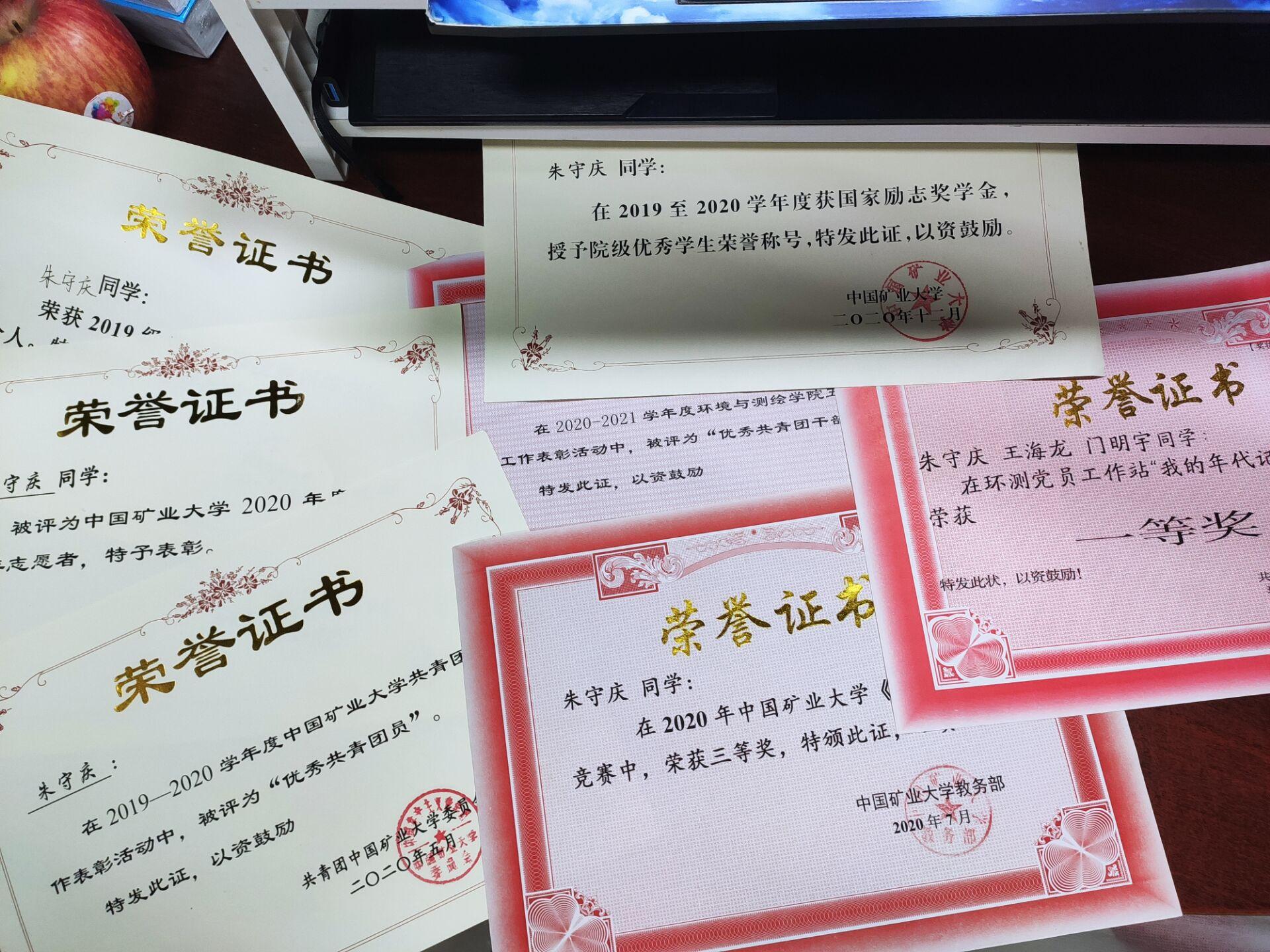 朱守庆在大一时候曾担任环境科学与工程2019-1班班长,班级在他与所有同学的团结努力下,获得了校先进班集体荣誉称号。这一年的经历对他而言,既是能力的提升,更是宝贵的精神财富。除了班级的各类活动,朱守庆也会积极参加到各种比赛中去,其中大多是文化艺术体育类的活动,他认为课下活动或是学生工作都是大学生活不可或缺的部分,不但可以丰富生活、充实自我,还可以增长知识才干。