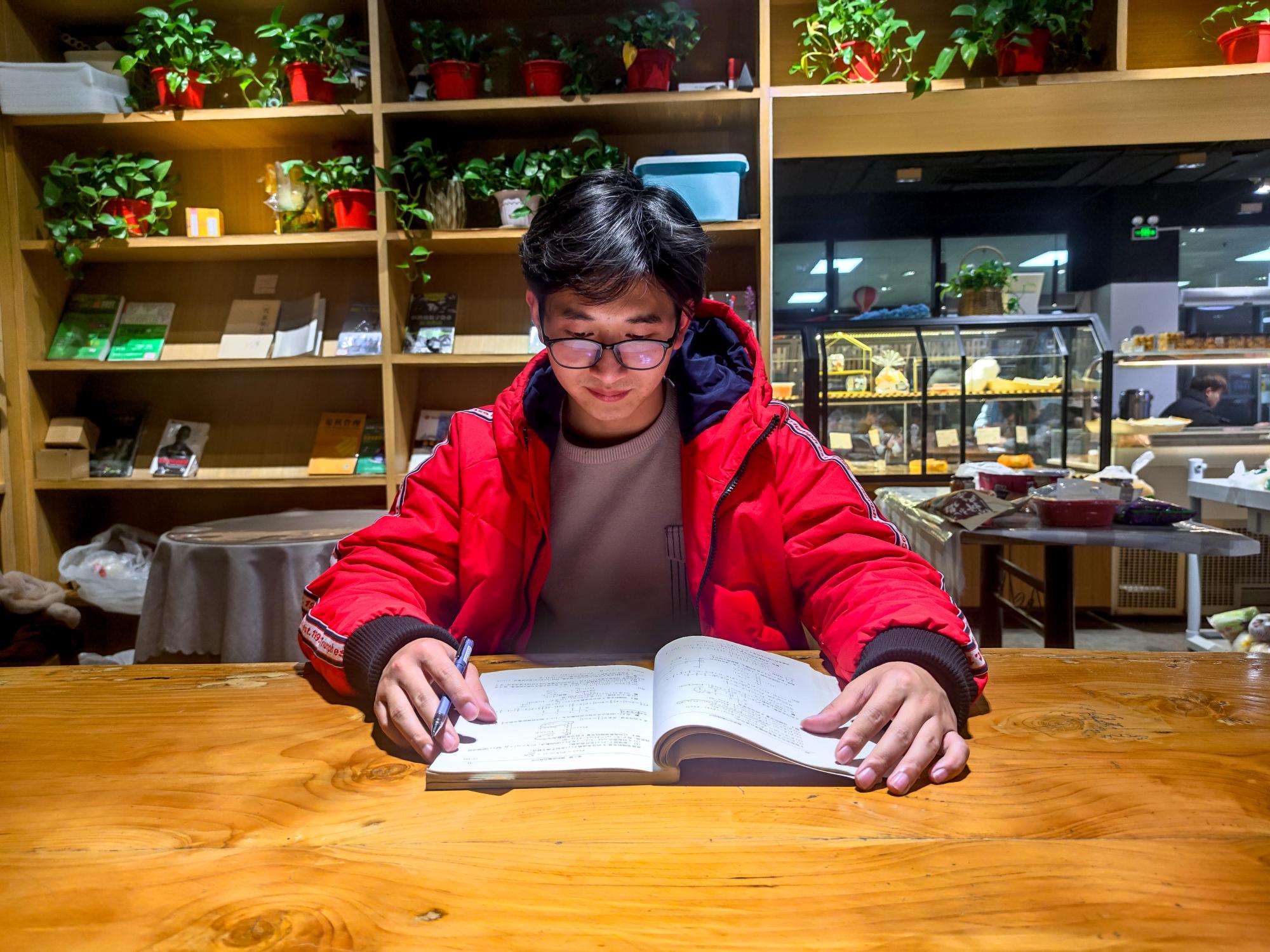 两人有着不同的学习方式,各自有着自己的习惯相比于座无虚席氛围带着些许沉闷的图书馆,朱守庆更喜欢去公教区学习。对于学习他说,在做数理类的题的时候,尤其需要集中注意力,不能被周遭环境影响,更不能受手机的干扰,这样才可以提高效率。他还提到,学习文理思政类的知识时,他倾向于在一个独立安静的环境中比如教学楼休息区,将知识点诵读出来,这样可以加深印象,有助于考试