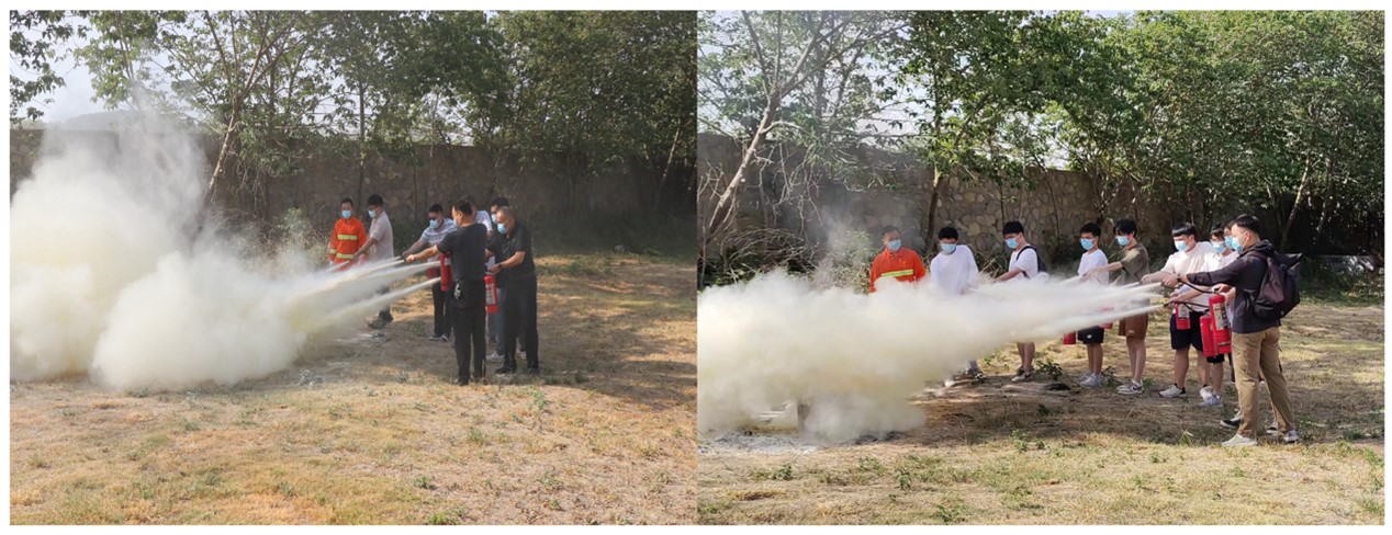 最后,研究生每8人一组,进行灭火实训。在保卫处工作人员的指导下,学生们手持灭火器,迅速而准确地扑灭了模拟火源。通过实际操作,学生们不仅掌握了灭火器的使用方法,还提高了应对突发火灾的能力。
