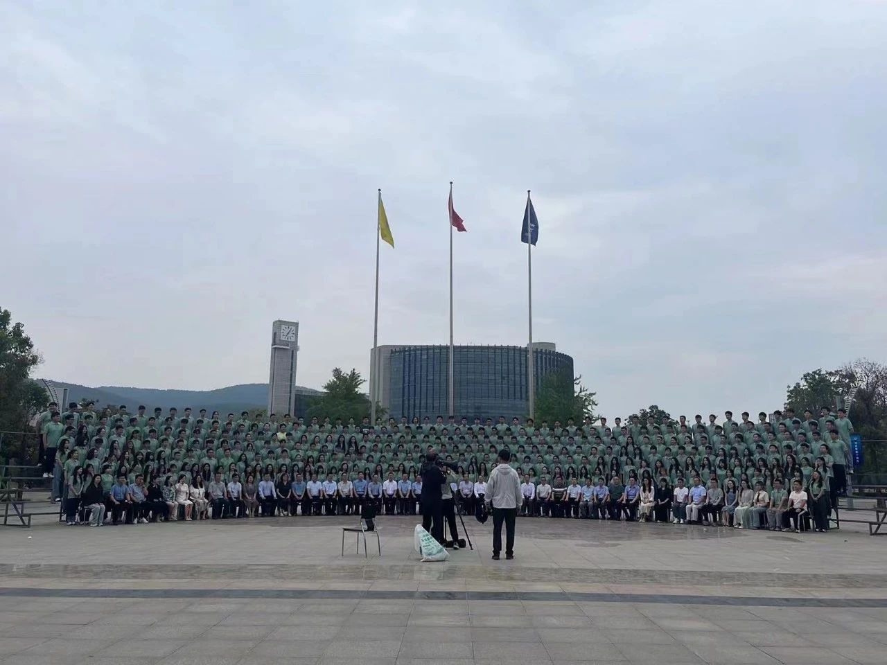 6月5日上午,学院老师和同学们集合在国旗下,共同拍摄集体毕业照。按下快门的那一刻,青春的幸福被定格成了永远。毕业照拍摄完成后,同学们纷纷换上学士服,与自己朝夕相处的老师和同学进行合照,有的在常驻自习室前留下足迹,有的则借助创意道具和装饰,为自己的学业生涯画上完美句号。