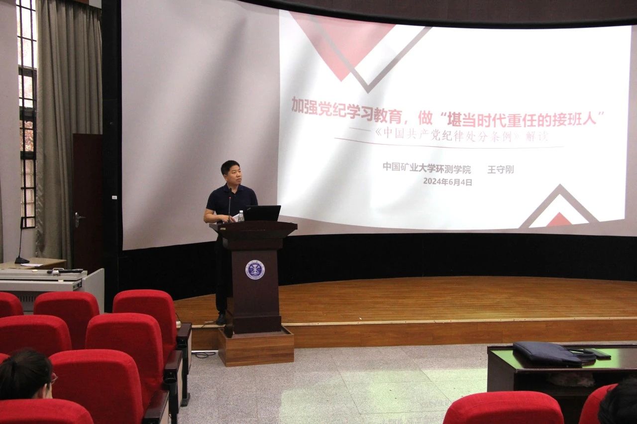 6月4日下午,我院在环测楼B109开展以“加强党纪学习教育,做堪当时代重任的接班人”为主题的毕业生党课。党课由学院党委书记王守刚主讲,全体毕业生党员参加学习。