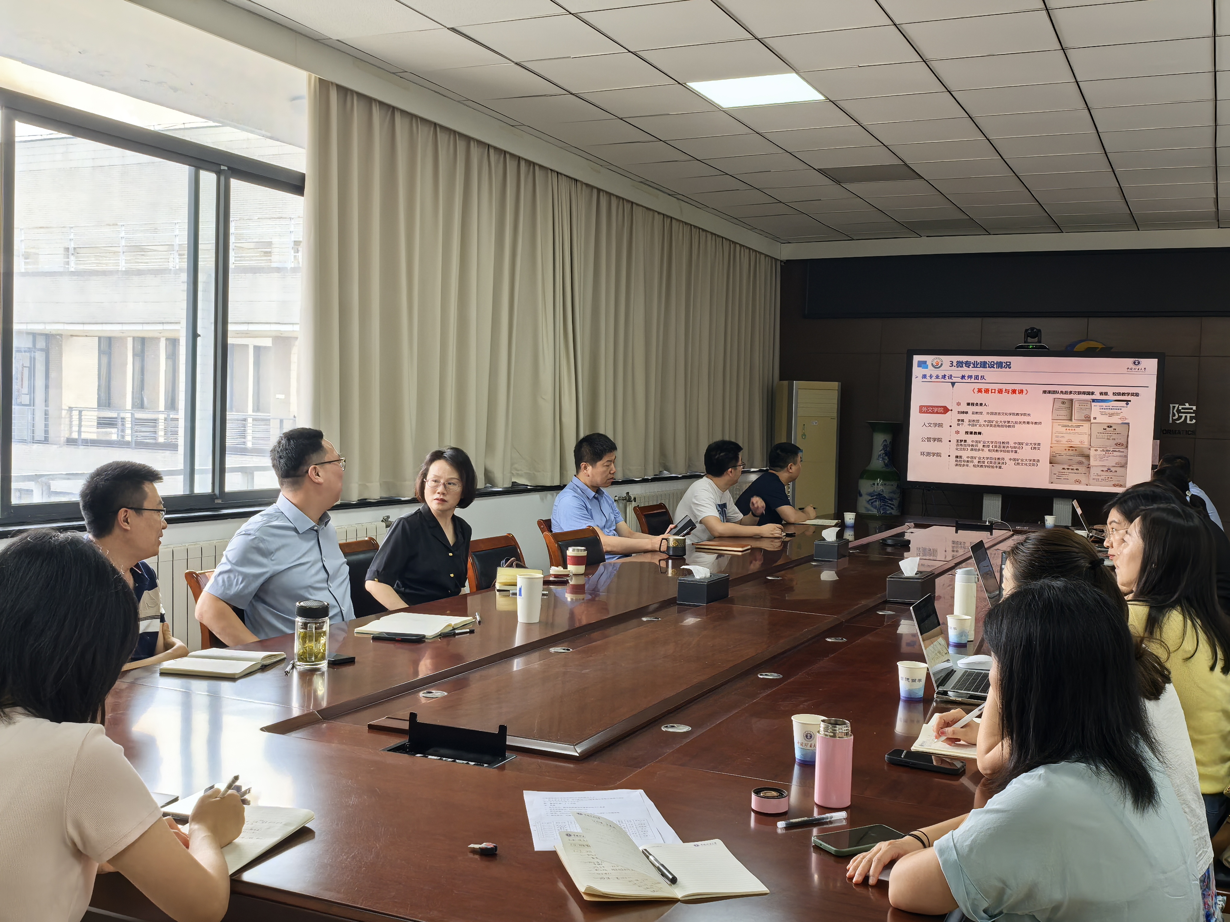 6月19日上午,学院在A506会议室召开了全球治理教育微专业建设与教育教学工作研讨会。会议邀请了学院党委书记王守刚、副书记韩福顺、副院长周来、外文学院副院长刘婷婷、全球治理教育微专业负责人何士龙,以及外文、人文、公管和环测四个学院的微专业课程团队教师共同商议了微专业建设与日常教育教学等有关事宜,会议由周来副院长主持。