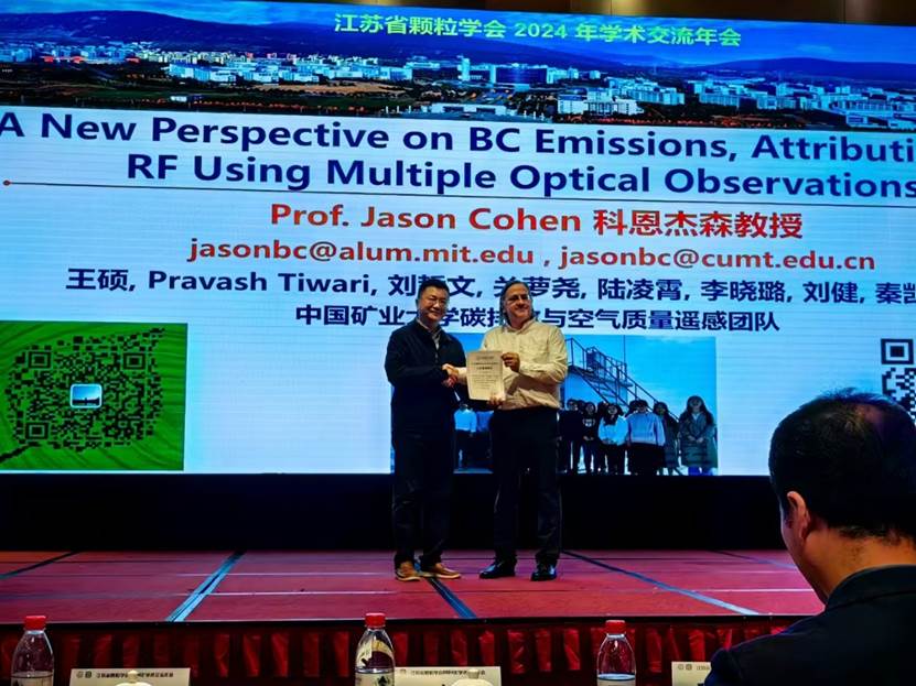 2024年11月15至17日,由江苏省颗粒学会和南京师范大学主办的2024年学术交流年会在南京新地酒店举办,我院Cohen Jason教授受邀参会并做了题为“Using Multiple Optical Observations to Provide a New Perspective on BC: from Emissions to Attribution and Radiative Forcing”的学术报告。