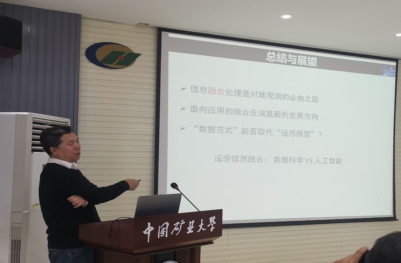 会议邀请到973首席科学家,武汉大学教授、博士生导师张良培教授以及国家杰出青年基金获得者、中科院“百人计划”研究员、中国地质大学(武汉)湖北省“楚天学者”讲座教授王力哲教授,二位均是遥感方向的著名学者。张良培教授以《多源遥感卫星遥感数据的融合处理与应用》为题开展报告,以同质遥感数据融合、异质数据融合、面向应用的融合反演为纲,深入浅出的向现场听众介绍近年来国际上遥感领域关于多源遥感影像信息融合研究的热点问题,并就此做出了展望。王力哲教授以《遥感数据质量提升》为主题开展报告,他首先系统地介绍了遥感信息工程,并从遥感信息应用需求、传感器端进步(以天基互联为例)、空间信息基础设施进步、应用端的进步四方面做了全面而前沿的汇报,紧接着对数据质量提升的方法体系与模型做了详细讲解。报告后,两位教授分别耐心解答了同学们的疑问。