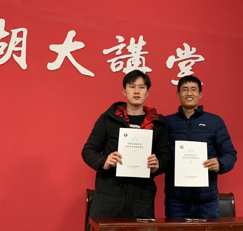 学术导师制导师代表郝明老师和学生代表王腾分别发表了讲话。启动仪式上,学术导师代表郝明老师与学生代表肖鑫签署了《我院本科生学术导师制承诺书》。