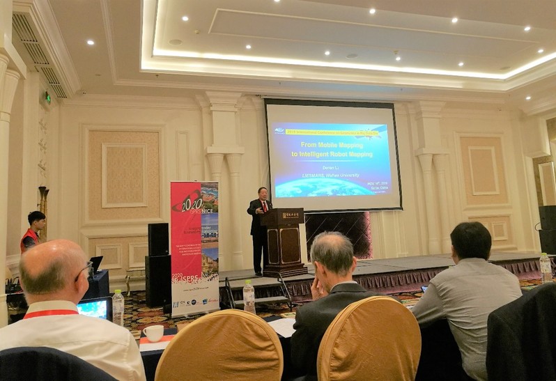 研讨会设置了1个开幕式及主题大会会场、4个分会场、1个海报会场及1个企业展览会场,并邀请了22个专家做特邀主旨演讲。我院院长李德仁院士应邀做了题为“From Mobile Mapping to Automatic Robot Mapping”的特邀报告,薛勇教授应邀做了题为“China Collection 2.1 and Big Energy Remote Sensing Data”的特邀报告。