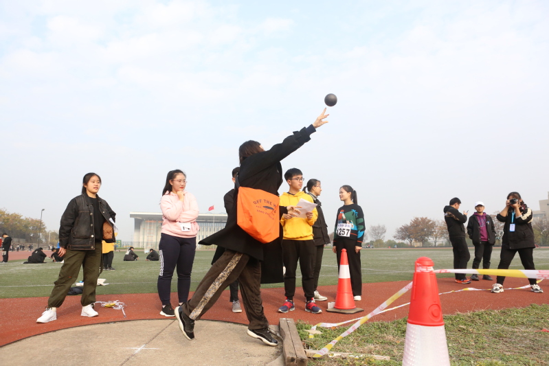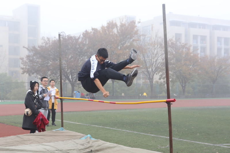 运动场上工作人员开始有秩序的组织检录及各项赛事的开展,各个班级在其所分配区域内入位等待比赛项目通知。最先开始的是拔河比赛,因为参赛人数多,比赛过程中场面富有感染力,操场上洋溢着拔河节奏的口号和加油的呐喊声。拔河比赛作为头阵,迅速暖场,鼓舞了运动员们的士气,这为接下来的田赛增添了动力。本次运动会共设24个项目,径赛场上,随着发令枪响起,各班运动员你追我赶,奋力拼搏,如利箭般冲向终点;田赛场上,湿滑的铅球、泥泞的沙坑、不断攀高的横杆都阻挡不了运动员们奋勇争先的热情。一次又一次地起跑、跳跃、投掷,展现出运动员们追求“更快、更高、更强”的体育精神。观众们的热情也没有因小雨而减退,操场上洋溢着热闹友爱的氛围,长跑运动员比赛结束后,同学们纷纷上前搀扶、递水。随着比赛越来越激烈,观众席的呐喊助威声也渐渐高涨,每个人的脸上都洋溢着激动、兴奋的神色,每一声呐喊都宣扬出我院团结一心、孜孜追求的精神。田径场中间的草坪被参加“趣味运动会”同学们的笑声笼罩着,一个个轻松简单但又十分有趣的项目吸引了许多老师和同学参与,这让极具竞争性的运动会增添了许多欢乐。