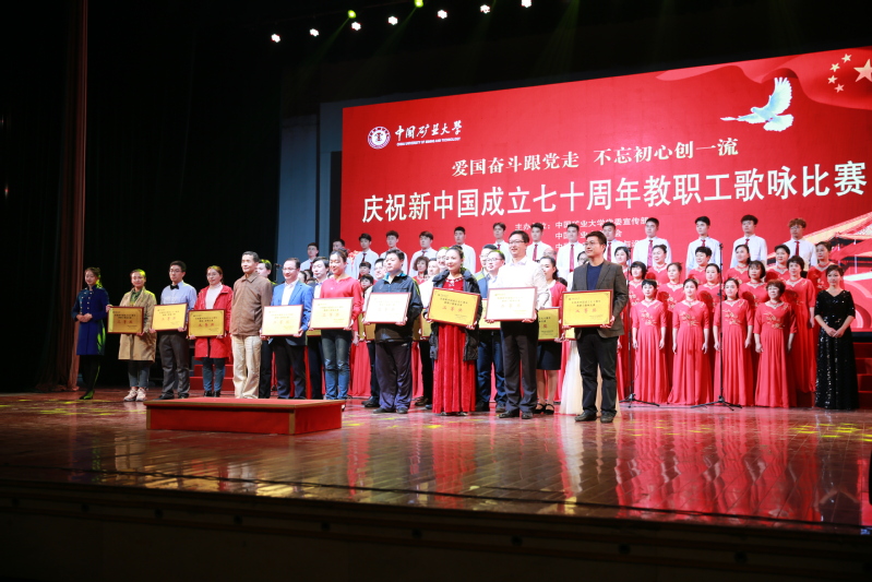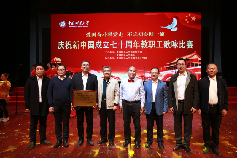 为进一步增强广大教职工爱党爱国爱校意识,10月19日晚,中国矿业大学在文昌校区科学馆隆重举行庆祝新中国成立70周年教职工歌咏比赛。我院教职工饱含激情、斗志昂扬,以一曲《走进新时代》在本次比赛的28支队伍中,以第七名的成绩荣获二等奖。