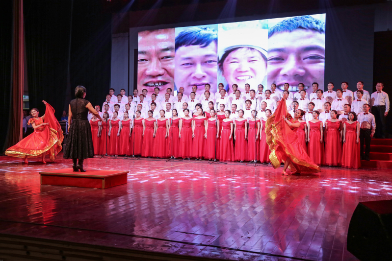 正式演出时,我院教职工个个精神抖擞,放声歌唱。他们通过歌声表达对祖国的祝福和热爱,“我们唱着东方红,当家作主站起来;我们讲着春天的故事,改革开放富起来;继往开来的领路人,带领我们走进那新时代,高举旗帜开创未来!”振奋人心的歌声在科技馆响起,为现场观众带来耳目一新的合唱表演,引起大家雷鸣般的掌声。
