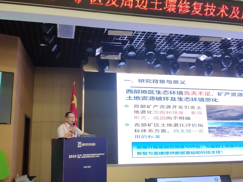 牟守国副教授作了题为《西部重点矿区土地退化因素调查与评价》的报告。报告介绍了煤炭、金属、非金属三大类矿区土地退化的调查与评估的必要性、技术路线,并详细展示了在自然地理与环境本底特征、矿区土地退化因素与类型、数据库构建与共享等方面取得的调查与研究成果。