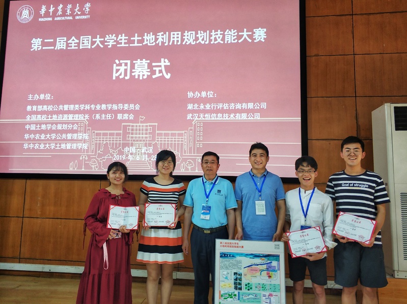 2019年6月23日,第二届全国大学生土地利用规划技能大赛决赛在华中农业大学举行。本此大赛由教育部高校公共管理类学科专业教学指导委员会、全国高校土地资源管理院长(系主任)委员会、中国土地学会规划分会主办,华中农业大学公管学院和土管学院承办,初赛共有400多所单位参赛。经过层层选拔,最终来自中国矿业大学、南京大学、武汉大学、四川大学、西北农林科技大学、中国文化大学(台湾)、南京农业大学、华中农业大学、中国地质大学等56所本科高校的60支参赛作品入围决赛。