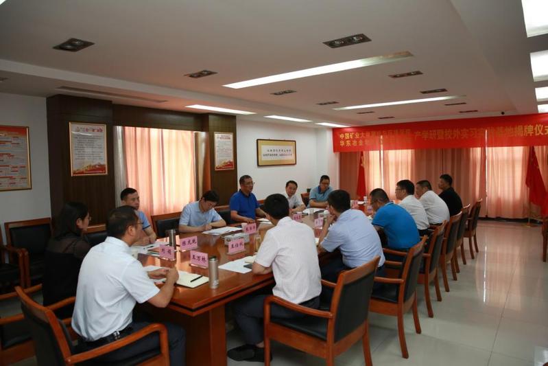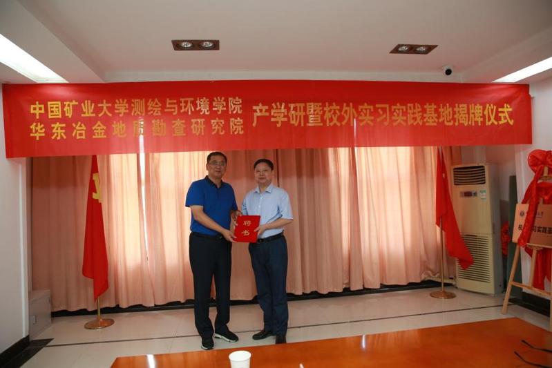 座谈会上,华东冶金地质勘查研究院书记、院长刘令胜简要介绍了双方围绕2019年4月12日签订的《战略合作协议》推进情况。我院李长贵书记对双方能够高效地开展工作给予肯定,就下一步双方合作意向和工作重点提出了意见建议。双方与会人员就推进落实产学研合作内容、特别是人才培养、研究生实践、本科生实习等工作进行了深入探讨与交流。座谈会上,学院李长贵书记为4位校外兼职研究生指导教师颁发了聘书,郑南山副院长与黄志刚副院长共同为产学研合作基地揭牌,吴侃教授与程金华总工程师为中国矿业大学实习实践基地揭牌。会后,参观考察了华东冶金地质勘查局史陈列馆和中心实验室。