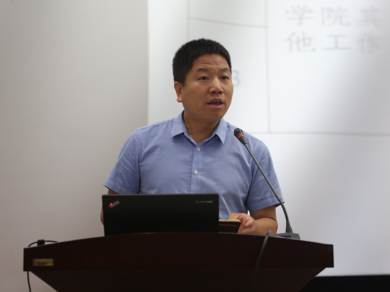 7月10日下午2点30分,我院于学院楼B109报告厅召开全体教职工大会。学院党委书记李长贵、执行院长张绍良、党委副书记王守刚、教学副院长周来、行政副院长郭东等领导出席了大会,学院全体教职工参加了大会。会议由学院党委书记李长贵主持。