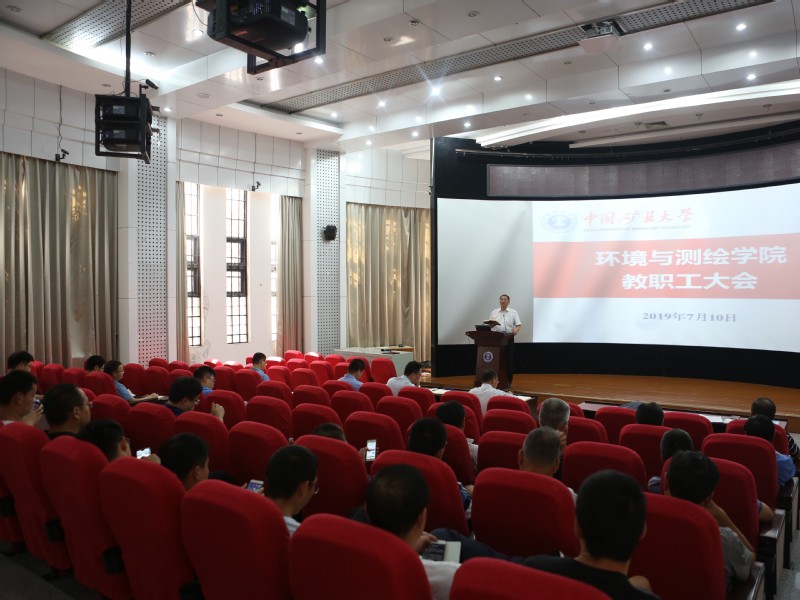 张绍良院长对2019年上半年的工作进行总结。张院长指出,在各项重点工作开展中,我院全体教职工齐心协力,有效推进了各项工作及活动进行,最终取得了优异的成绩。2019年上半年取得了重大成就,其中包括环境科学与生态学首次进入ESI前1%、测绘工程顺利通过教育部专业认证、校讲课比赛特等奖1项、二等奖1项、获批国家级虚拟仿真实验项目1项、及李长贵书记荣获“中国煤炭工业思想政治工作先进个人 ”等。随后,张院长对下学期的本科教学、师资队伍建设、学科建设、科研与研究生工作等工作进行部署,提出重点推进新版本科生培养方案的调研与修订、引陪“四青四高”人才2人以上、重点制定学科建设规划,明确学科发展方向、积极准备第五轮学科评估等具体措施。