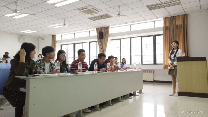 5月7日下午4:15,环测团委在博学一号楼B401教室举行2019年校级暑期社会实践答辩会。本次答辩会的评委为学工办主任韩福顺、院团委书记于海霞、辅导员陆雨、李艳萍和牟俊朋以及团委学生副书记王一冲、翟浩然。本次答辩会,我院共有24支实践队伍参加。