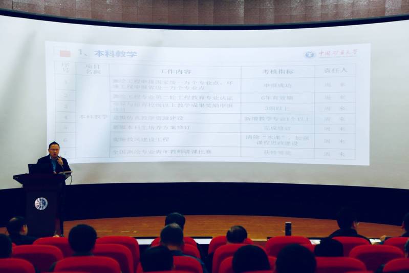 会上,张绍良院长就学院今年的重点工作进行了布置。2019年,学院围绕中心工作,从本科教学、学科建设、师资队伍建设、研究生与科研工作、党建工作、学生工作和学院行政工作七个方面,列出了40条重点工作,制作了重点工作推进表,明确了责任人和考核指标。希望全体教职工进一步统一思想、凝心聚力,继续深化教学改革、明确学科方向、加强文化建设、推动学院高质量发展,向建校110周年献礼。