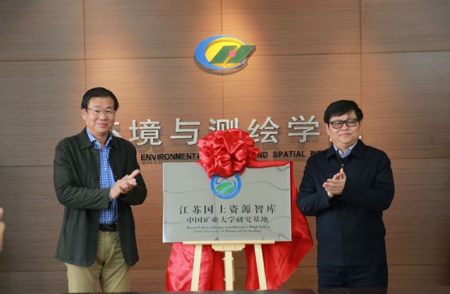 史照良副巡视员与赵跃民副校长为江苏国土资源智库中国矿业大学研究基地揭牌。