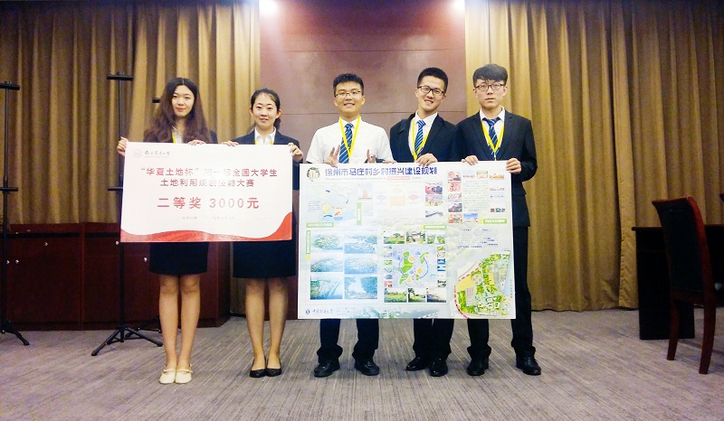 6月10日,“华夏土地杯”第一届全国大学生土地利用规划技能大赛决赛在南京农业大学学术交流中心举行,由36365路检测中心丁忠义、李效顺老师指导,土地资源管理专业孙爱博、刘睿洋、刘希朝、钟鹏宇和吕汶鑫五位同学共同完成的作品“徐州市马庄村乡村振兴建设规划”获得全国二等奖的好成绩。