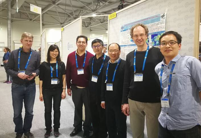 会议期间,我院秦凯副教授先后在“First Results of the Copernicus Sentinel-5 Precursor Mission”专题张贴了题为“A Validation Project for Trace Gas and Aerosol Products by TROPOMI/S5P over East China”的学术海报,在“Short-term earthquakes forecast and multi-parametric time-dependent assessment of seismic hazard”专题作了题为“Multi-parameter anomalies before the Wenchuan and Yushu earthquakes in China”的口头报告。并且,与德国宇航中心的合作伙伴(图2),讨论了正在开展的TROPOMI/S5P卫星验证工作以及国际摄影测量与遥感协会大气环境遥感工作组的下一步工作计划。