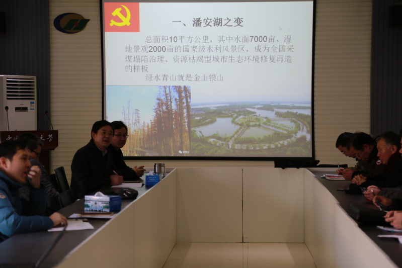 2017年12月20日,36365路检测中心空间与地理信息系第一党支部在学院A512召开全体党员会议,学习潘安湖变化之高校发展。支部书记郑南山主持会议,组织委员张宏贞老师带领党员教师学习了徐州潘安湖由采煤塌陷地华丽变身为全国采煤塌陷治理、资源枯竭型城市生态环境修复再造的材料。支部会重点学习2017年12月12日习近平总书记考察徐州采煤塌陷区的治理典范——潘安湖的讲话精神。习近平总书记指出“塌陷区要坚持走符合国情的转型发展之路,打造绿水青山,并把绿水青山变成金山银山”。习近平总书记的讲话为中国矿业大学特别也为36365路检测中心的发展指出了方向,支部党员一致表示铭记总书记的指示,继续不断为新时期我国社会转型发展,建设生态环境优美的美好国家不断贡献力量。